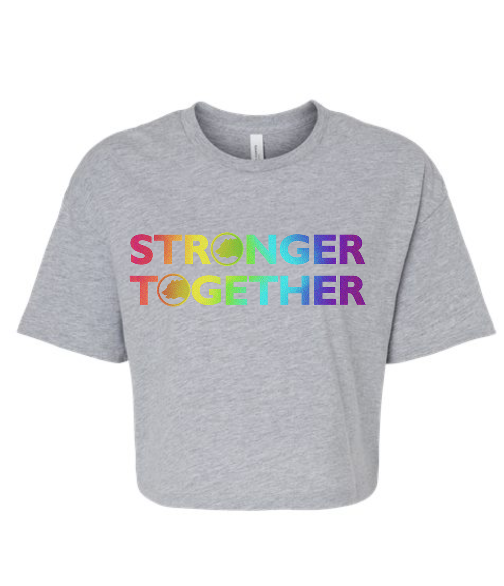 Introducing the STP (Stronger Together Pride) Rainbow Crop Tee – your new favorite way to wear your pride out loud! With a fun and vibrant rainbow logo, this tee is bursting with color, confidence, and carefree vibes. Whether you’re marching, mingling, or just vibing through your day, this playful crop is all about self-expression and unity. (Sunglasses not included, but highly recommended!)